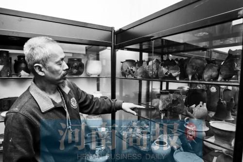 “這個(gè)是商代的鬲,這個(gè)是漢代的陶,這個(gè)是五代時(shí)期的玉枕……”河南鄭州某小區(qū),在59歲敬勤儉的家中,說起展示柜中的藏品,他一臉的寵溺。“漂亮著呢”“好看得很”是他說到這些寶貝時(shí)用得最多的話,這些都是敬勤儉在近20年里撿來的。