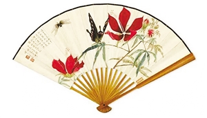 董橋書房收藏的周煉霞《蝴蝶》設(shè)色紙本成扇。