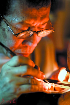 燙金絲印、公章膠印、原子印章……在和平西路9號(hào)有一家毫不起眼的刻章店——秋記刻章工藝,這里記錄著一段百年三代人的篆刻家族史。19世紀(jì)末期,叔公項(xiàng)信南隨著戲班來到廣州,成為一位金石篆刻名家;20世紀(jì)初,幼年喪父的項(xiàng)少南來到省城投奔叔叔項(xiàng)信南,也成為知名篆刻藝人,直到90歲高齡仍篆刻不輟;上世紀(jì)60年代,項(xiàng)少南之子項(xiàng)頌秋子承父業(yè),如今已入行57年。如今,隨著機(jī)器刻章的興起,從秋哥變成秋叔的71歲項(xiàng)頌秋卻面臨著手藝失傳?!叭绻幸懔Φ娜讼雽W(xué),我愿意免費(fèi)教學(xué)?!彼f。