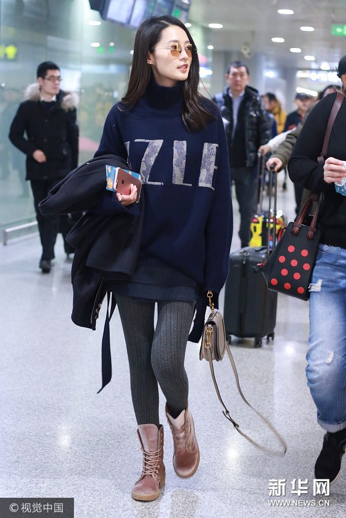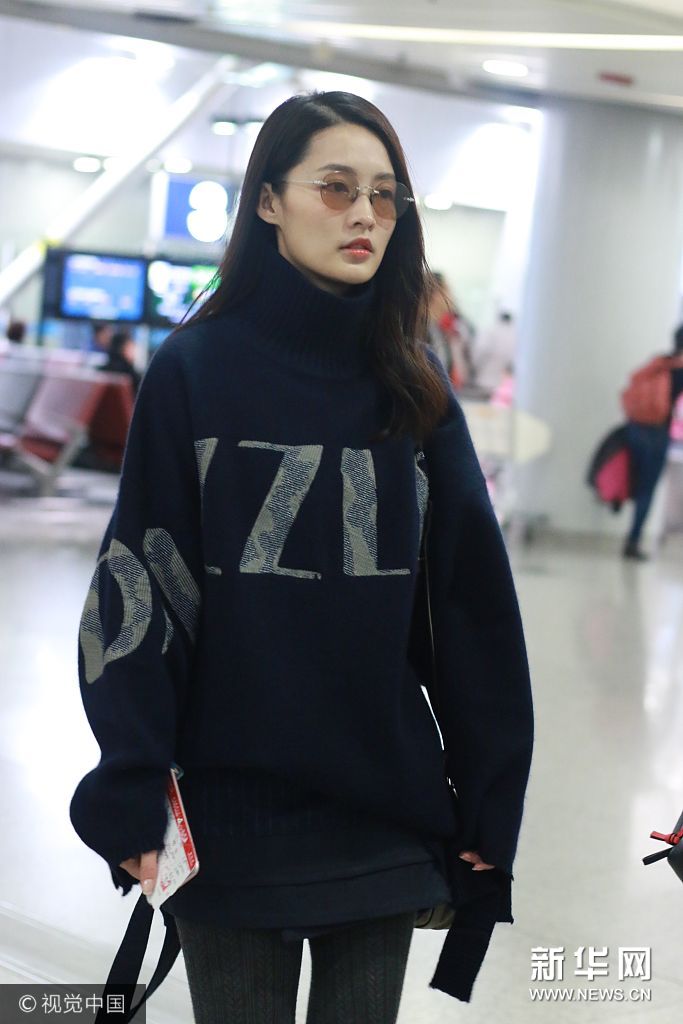 李沁高領(lǐng)毛衣 戴茶色墨鏡溫暖時(shí)尚