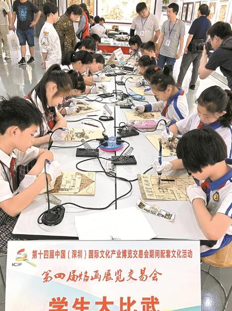 昨天下午的光明烙畫基地內(nèi)熱鬧非凡,前來一飽眼福的烙畫愛好者、市民群眾絡(luò)繹不絕。參觀者在基地內(nèi)體驗(yàn)烙畫創(chuàng)作,與烙畫老師交流學(xué)習(xí),更增添了文化氛圍。據(jù)了解,此次烙畫展交會(huì)由深圳文學(xué)藝術(shù)界聯(lián)合會(huì)、深圳市光明新區(qū)管理委員會(huì)指導(dǎo),深圳市工藝美術(shù)行業(yè)協(xié)會(huì)、深圳市烙畫藝術(shù)協(xié)會(huì)黨支部主辦、深圳弘揚(yáng)烙畫藝術(shù)發(fā)展有限公司承辦,以“助推深圳文化綠洲,傳承民族非遺烙畫”為主題。