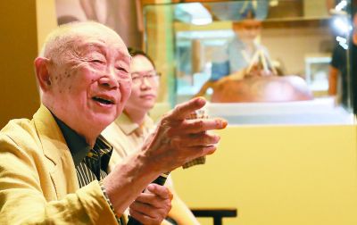 此次展覽作品以紫砂壺體為載體,借助紫砂鐫刻工藝半繪半刻,是黃永玉在創(chuàng)作媒材上又一次新的嘗試。作為書(shū)畫(huà)界有名的“90后”老頑童,在展覽開(kāi)幕式上,黃永玉雖然耳朵有點(diǎn)背,但依然“金句”頻出,話里透著天真幽默:“一個(gè)老頭閑在家里沒(méi)事兒干,畫(huà)了一些壺。用時(shí)髦的話來(lái)講,就是行為藝術(shù)吧!”