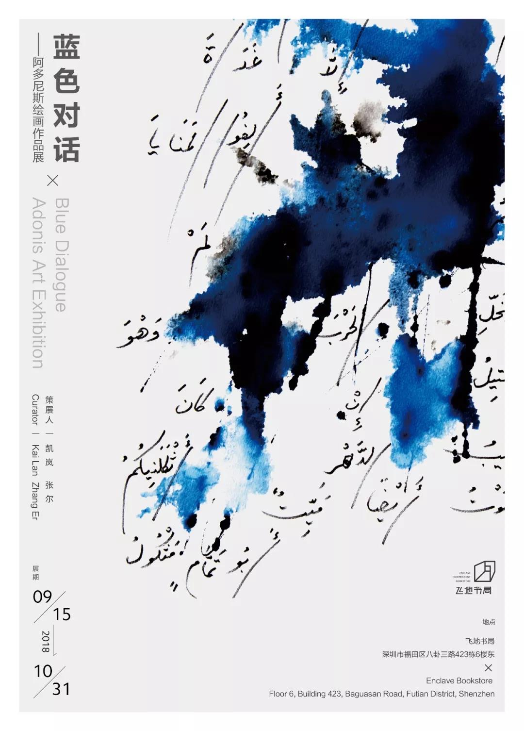飛地書局將于9月15日至10月31日展出“藍(lán)色對(duì)話——阿多尼斯繪畫作品展”。展覽由凱嵐與張爾策劃,呈現(xiàn)詩(shī)人阿多尼斯五個(gè)系列的繪畫。