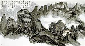 王和平不僅能書寫2尺的大字,還能寫篆書、隸書、行書、草書、楷書,他尤其擅長以指書寫長線條幅,還能書寫小到1寸左右的楷書、行書、草書等各種書體?!皬乃摹饵S山系列》,我看到了一個(gè)堅(jiān)強(qiáng)的古典腳步,追尋在范寬的《谿山行旅途》中,沐李唐的《萬壑松風(fēng)圖》,聽馬遠(yuǎn)的《踏歌圖》……一個(gè)精美絕倫的藝術(shù)時(shí)代遠(yuǎn)逝而去,念天地之悠悠,獨(dú)愴然而涕下。留幽幽懷古者,追憶圣賢高士清歌古琴于卷軸中的絕美風(fēng)騷。王和平和我都是這個(gè)幽幽懷古者,追求高貴古典精神的尋賢之人?!边@是評論家豐川在他的《心有千像,十指墨弦》一文中評價(jià)王和平的指書所述。