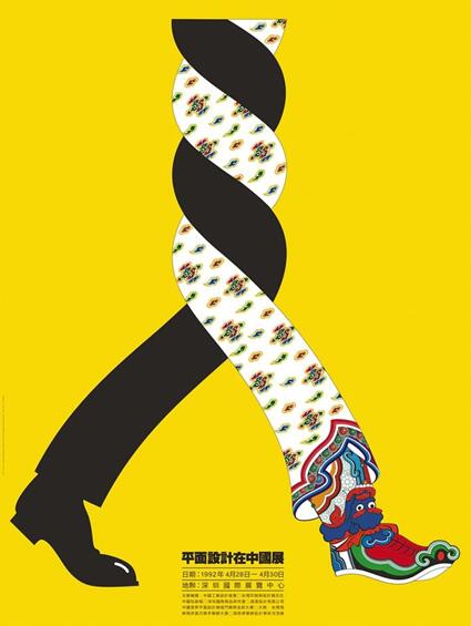 ▲陳紹華《平面設(shè)計在中國展》海報(關(guān)山月美術(shù)館收藏)