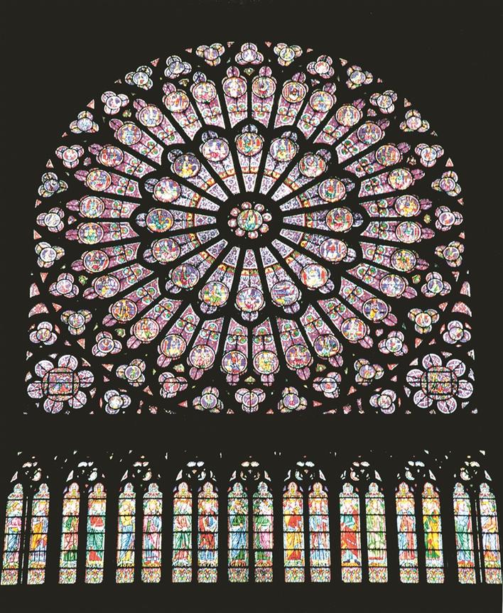 彩繪玻璃花窗“玫瑰花窗”也是巴黎圣母院內(nèi)的重要文物。18世紀,巴黎圣母院在路易十四統(tǒng)治時期經(jīng)歷了一次大修,12世紀留下的彩色玻璃窗被換成了透明玻璃窗,只有三扇玫瑰彩色玻璃窗被保留下來,也成為圣母院如今的著名景觀之一。在雨果的小說《巴黎圣母院》熱銷后,巴黎民眾和政府官員開始呼吁對這一“寶藏”進行修復。1844年,在建筑大師維歐勒·勒·杜克的帶領下,修復了圣母院的西立面、國王畫廊,還添加了十二圣徒雕塑以及圣母院屋檐上著名的怪獸雕塑。
