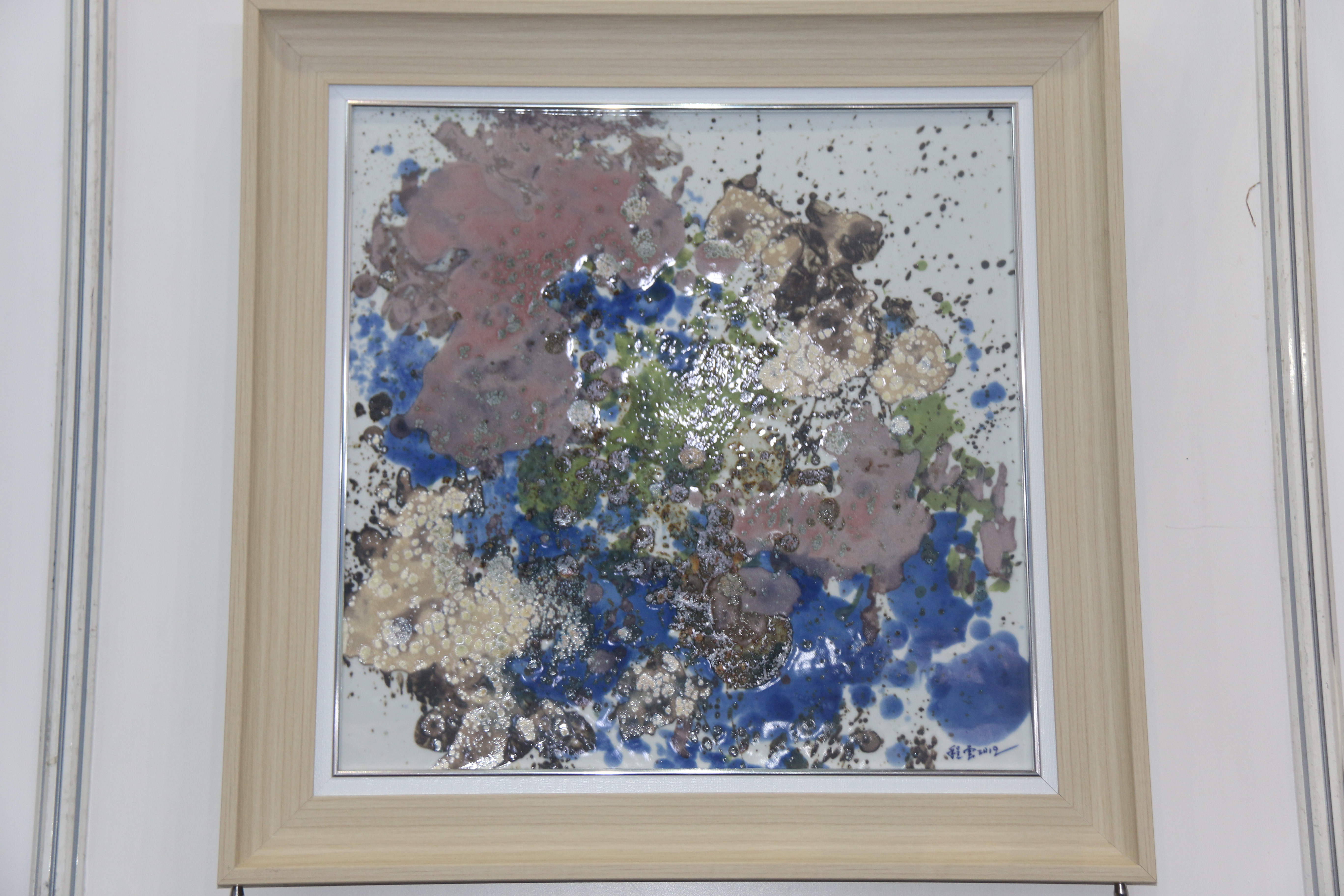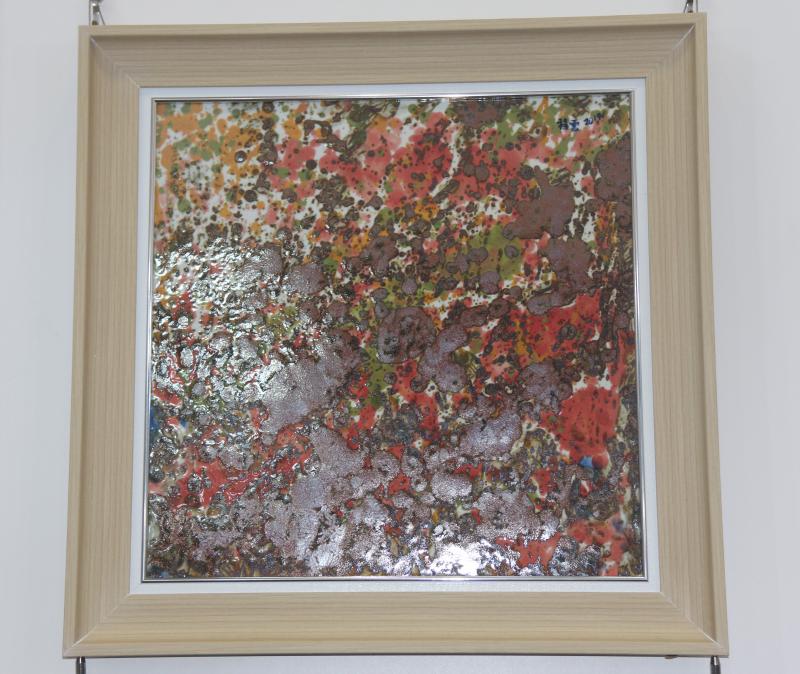 高溫顏色釉板畫則是則是使用各種色彩相融合后,便產(chǎn)生粉化作用,紅彩變成粉紅,綠彩變成淡綠,黃彩變成淺黃,其他顏色也都變成不透明的淺色調(diào),并可控制其加入量的多寡來獲得一系列不同深淺濃淡的色調(diào),給人粉潤(rùn)柔和之感。