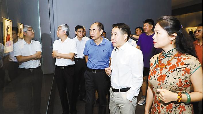 ▲王子武人物畫作品引起現(xiàn)場嘉賓濃厚興趣(主辦方供圖)