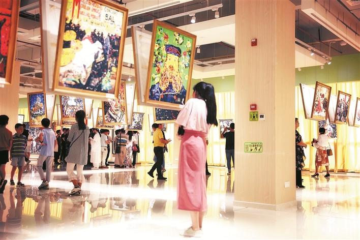 活動(dòng)現(xiàn)場(chǎng),他跟隨著視頻音樂(lè)手舞足蹈,一邊跳舞一邊創(chuàng)作,不一會(huì)兒,一幅生動(dòng)逼真的藝術(shù)畫作呈現(xiàn)在大家眼前。黃鳳榮介紹,“再創(chuàng)世界名畫100”是通過(guò)自己的表現(xiàn)手段,把世界名畫挑100幅出來(lái)重新演繹。這種演繹既保留它原來(lái)的面貌,同時(shí)又有新的元素注入。本次展覽共展出了106幅黃鳳榮的拼貼畫,作品以彩色貼紙作為主要材料,有蒙娜麗莎、街景、人物、植物等,每一幅都給觀眾不一樣的視覺沖擊。