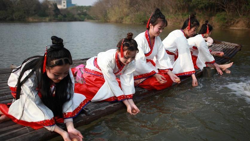 3月29日,一場重現(xiàn)中國古代春秋時期上巳節(jié)“曲水流觴、臨水浮卵、水上浮棗”風俗的活動上演。