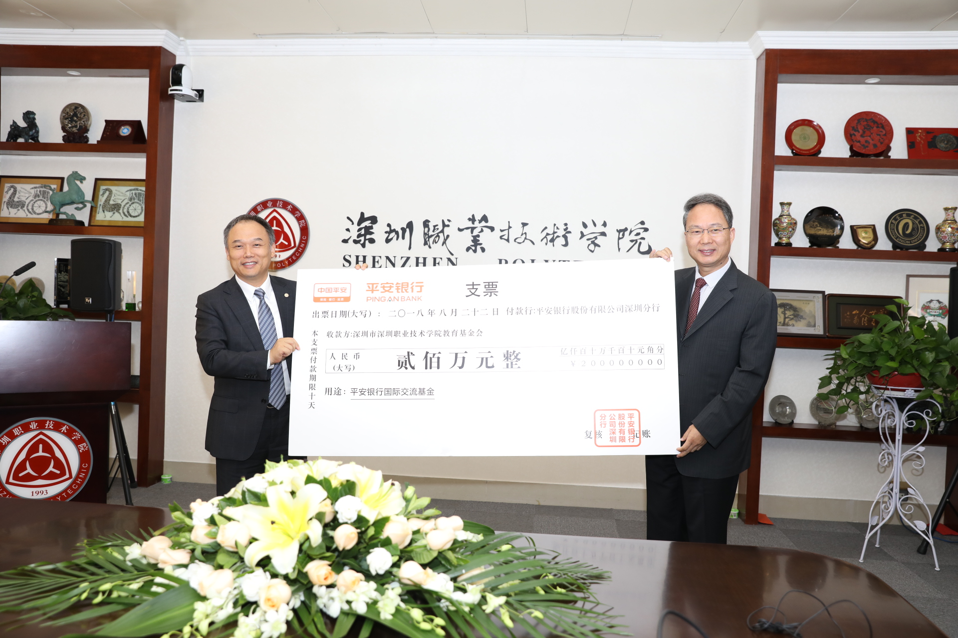 2018年11月22日,平安銀行與深圳職業(yè)技術(shù)學(xué)院校園一卡通項(xiàng)目交付儀式暨國(guó)際交流基金捐贈(zèng)儀式在深圳職業(yè)技術(shù)學(xué)院101會(huì)議室隆重舉行。平安銀行行長(zhǎng)助理、深圳分行楊志群行長(zhǎng)、孫芳滔副行長(zhǎng)、陳宏敬副行長(zhǎng)、高寒竹零售總監(jiān),深圳職業(yè)技術(shù)學(xué)院陳秋明黨委書記、唐曉鳴副校長(zhǎng)、董朝君副校長(zhǎng)等領(lǐng)導(dǎo)出席了儀式。