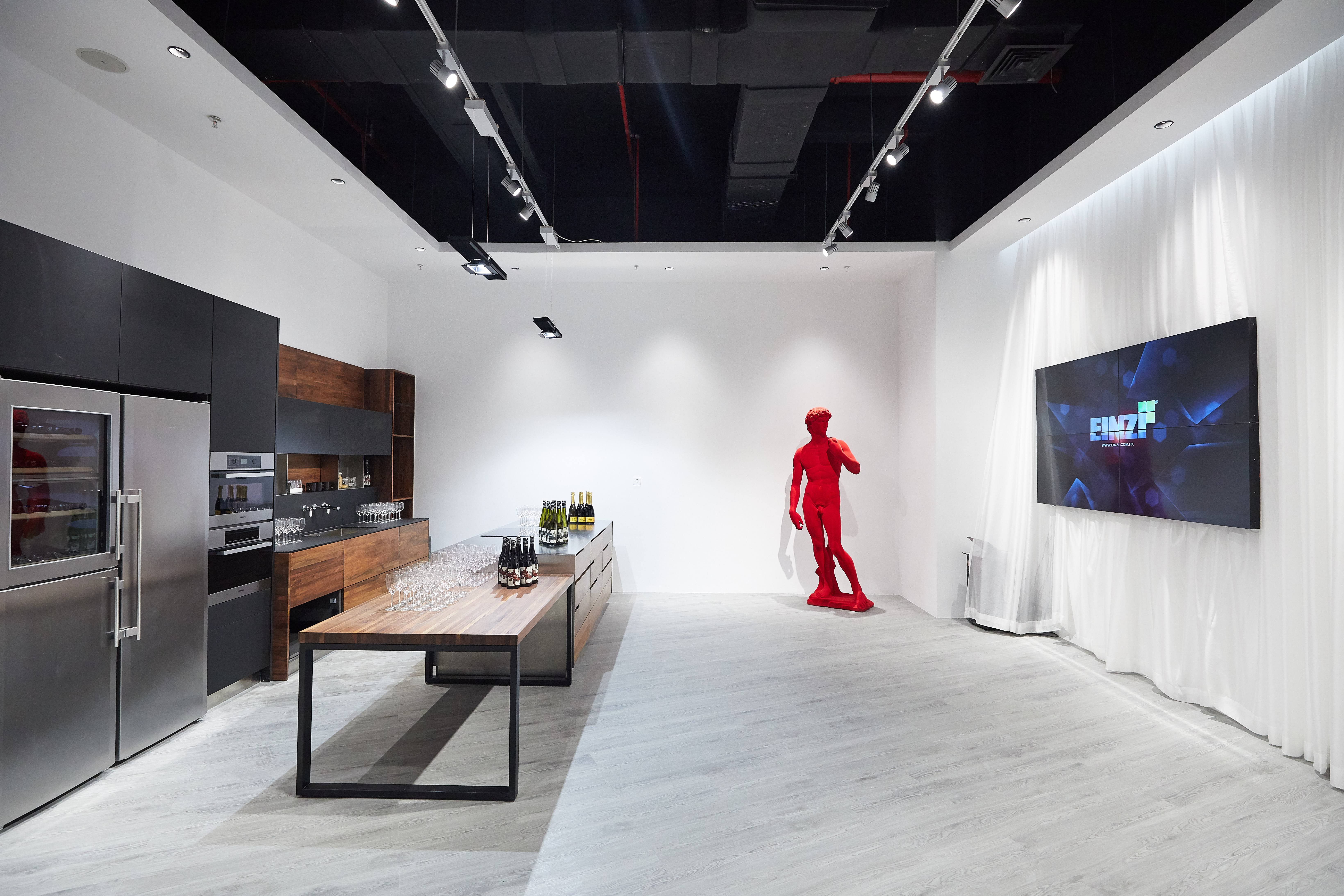 EINZI店內(nèi)設計以意式簡約風格為主,極具空間感。旗艦店放置多款經(jīng)典系列及熱銷廚柜款式,以大膽時尚的用色、圖案及無與倫比的優(yōu)秀組件組成,再配以來自意大利高級板材,質(zhì)感完美。