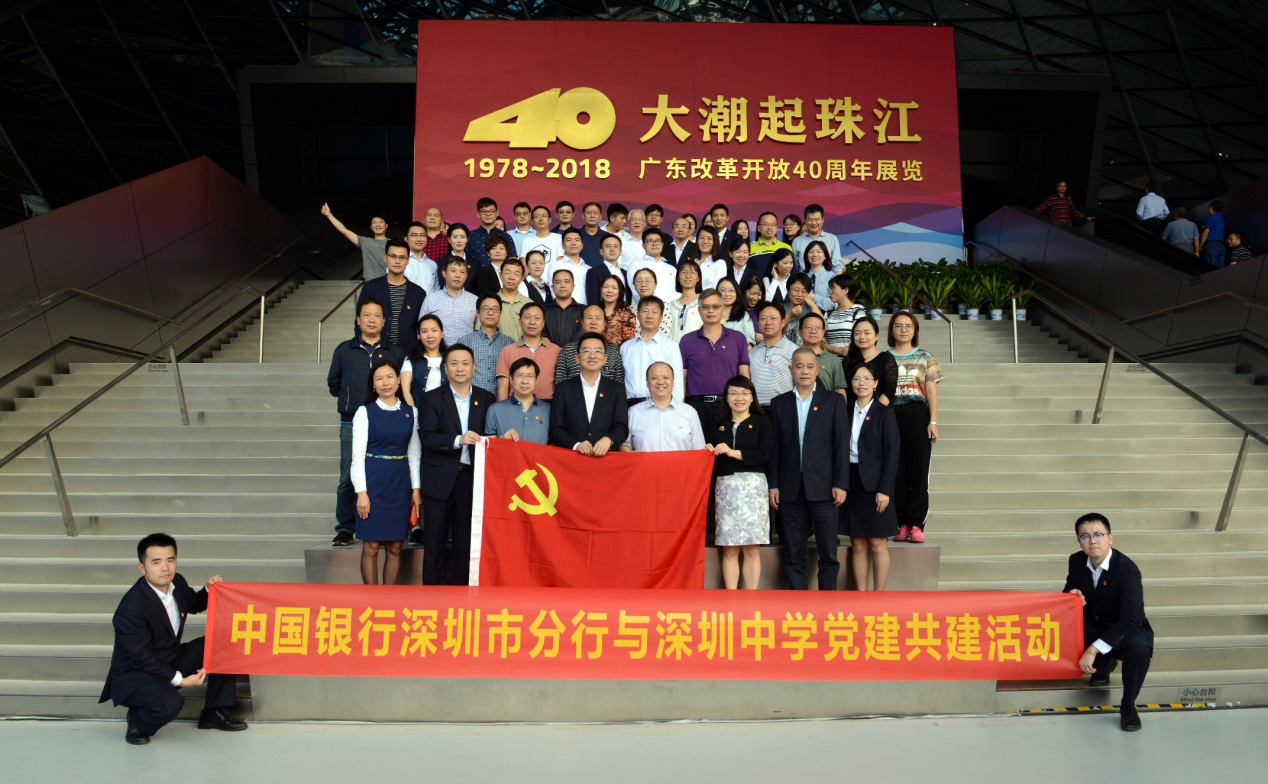 近日,中國(guó)銀行深圳東門管轄支行與深圳中學(xué)開(kāi)展黨建共建活動(dòng),雙方黨員代表共同前往深圳改革開(kāi)放展覽館,參觀了“大潮起珠江——廣東改革開(kāi)放40周年展覽”。深圳中行蒙震紀(jì)委書(shū)記和深圳中學(xué)王東文副校長(zhǎng)帶領(lǐng)黨員代表參加了此次活動(dòng)。