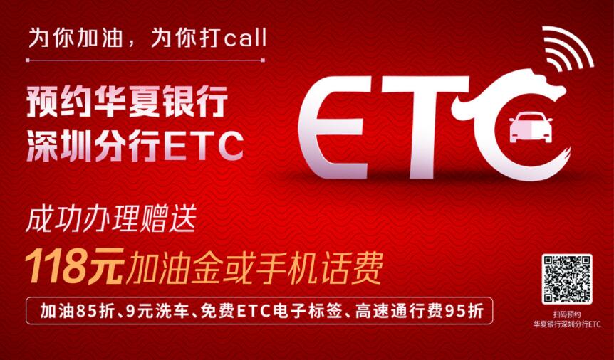 深圳新聞網(wǎng)7月26日訊 近期,華夏銀行深圳分行推出“為你加油,為你打Call”ETC推廣主題活動,成功辦理華夏銀行ETC即可獲得118元加油金或手機(jī)通訊費(fèi),更可享受加油85折、9元洗車、免電子標(biāo)簽費(fèi)、免費(fèi)快遞到家等多項(xiàng)優(yōu)惠活動。該行積極響應(yīng)政府關(guān)于取消全國高速公路省界收費(fèi)站、實(shí)現(xiàn)不停車快捷收費(fèi)的政策號召,滿足廣大客戶便利交通、輕松出行的切實(shí)需求,讓更多用戶享受到ETC業(yè)務(wù)的政策紅利。