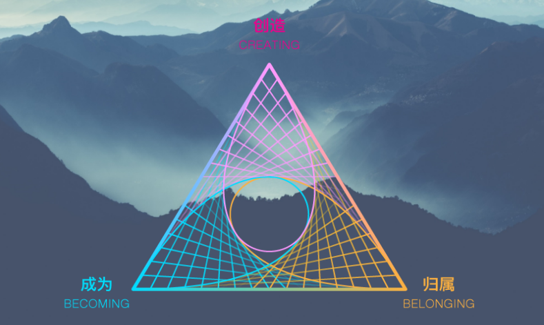 在這兩個維度的基礎上,陳瑋教授增加了Creating“創(chuàng)造”這個維度。Creating“創(chuàng)造”,是我給這個世界留下的精神和物質(zhì)遺產(chǎn),世界因你而變。在成為和歸屬完成之后,人生的使命是創(chuàng)造,是我們給這個世界帶來的更新與升級。當我們問,未來會是什么樣?我們真正要問的是:我,將為這個世界創(chuàng)造什么?