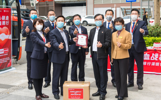 華夏銀行深圳分行行領(lǐng)導(dǎo)先后看望、慰問(wèn)獻(xiàn)血員工。深圳市血液中心向華夏銀行深圳分行頒授感謝獎(jiǎng)牌,深圳分行孫海強(qiáng)副行長(zhǎng)代表分行向血液中心捐贈(zèng)1000只口罩。