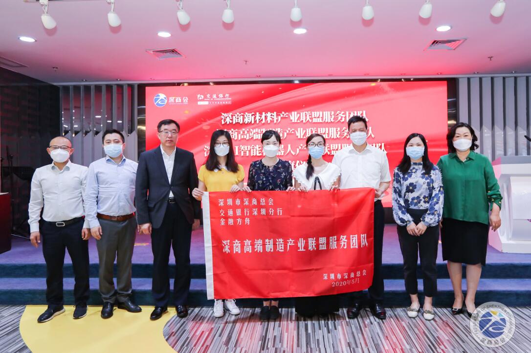 活動(dòng)啟動(dòng)儀式上,深圳市地方金融監(jiān)管局巡視員肖志家、交通銀行深圳分行胡剛副行長(zhǎng)、深圳市深商總會(huì)林慧會(huì)長(zhǎng)為交通銀行三支專(zhuān)業(yè)服務(wù)團(tuán)隊(duì)授予“深商產(chǎn)業(yè)聯(lián)盟服務(wù)團(tuán)隊(duì)”旗幟,標(biāo)志著深圳交行與深商總會(huì)、深商產(chǎn)業(yè)聯(lián)盟翻開(kāi)合作的嶄新篇章。深圳交行和深商總會(huì),將持續(xù)聚焦高端先進(jìn)制造、戰(zhàn)略新興產(chǎn)業(yè)、未來(lái)產(chǎn)業(yè),共同開(kāi)展“暖企行”企業(yè)調(diào)研活動(dòng),各展其能、協(xié)同作戰(zhàn),為深商新材料、深商高端制造、深商AI智能機(jī)器人等產(chǎn)業(yè)聯(lián)盟全方位傾斜資源,提供更有效率、更有活力、更加優(yōu)質(zhì)的金融支持,助推企業(yè)加快復(fù)工復(fù)產(chǎn)、達(dá)產(chǎn)增產(chǎn)。