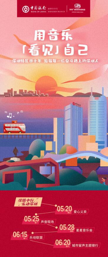據(jù)了解,“深情中行樂(lè)動(dòng)深圳”主題活動(dòng)將持續(xù)至7月,深圳中行將與深圳廣電集團(tuán)將陸續(xù)推出“解鎖深圳成就”H5互動(dòng)、“星星音樂(lè)會(huì)”、“聲音現(xiàn)場(chǎng)”、主題TVC、樂(lè)動(dòng)聯(lián)盟京東包裹、城市留聲主題銀行等子活動(dòng),與深圳市民共同發(fā)現(xiàn)城市中的溫暖、奮斗中的故事,為深圳特區(qū)四十年唱出贊美的心聲。