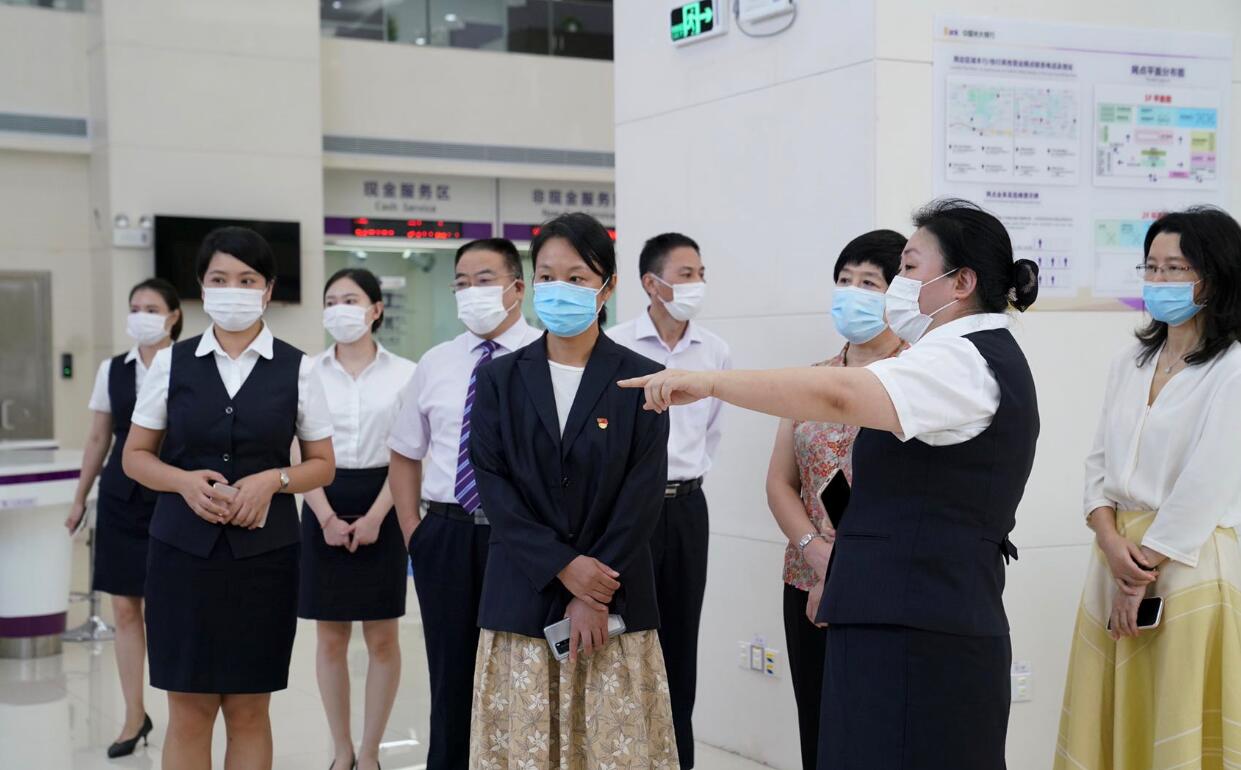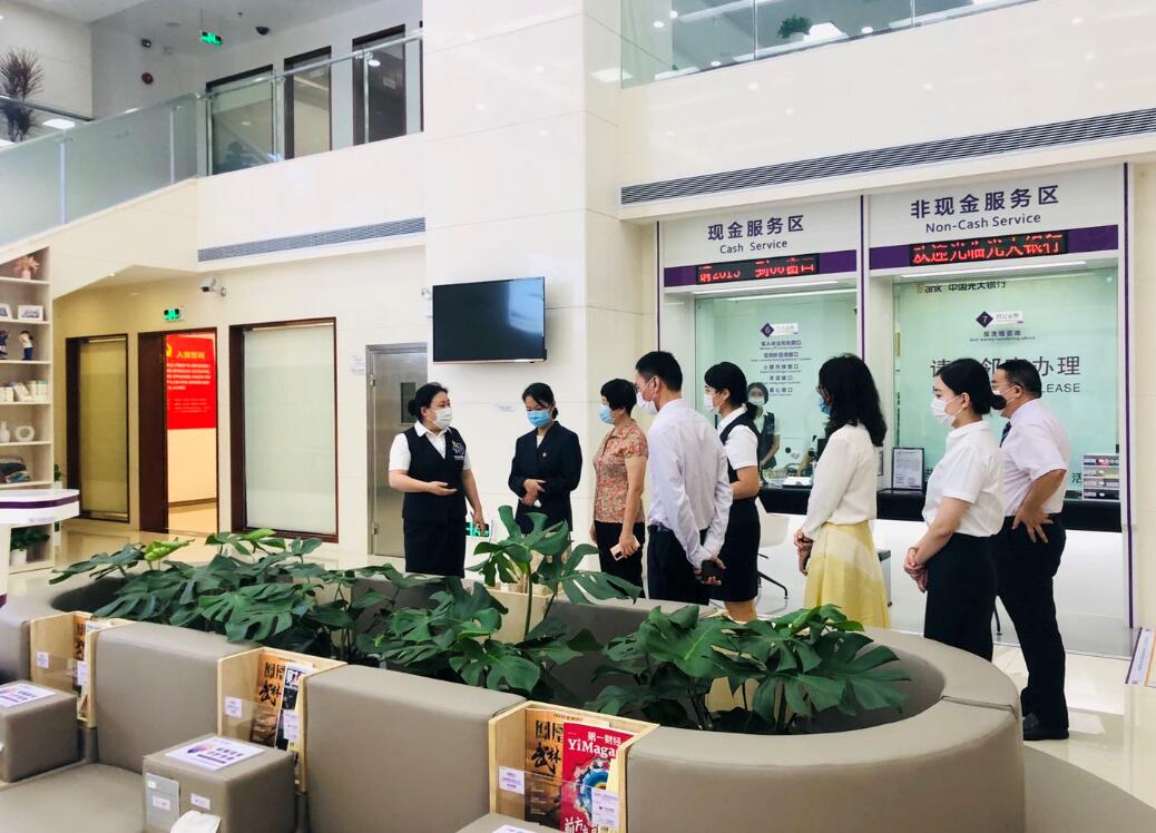 分行黨委高度重視此次調研活動,紀委書記方眾部署安排,在分行渠道管理部/消費者權益保護部和支行負責人陪同下,朱會長一行參觀了高新技術園支行營業(yè)部,對網(wǎng)點的服務環(huán)境、服務功能布局、大堂管理、柜面服務與效率、消費者權益保護與責任、服務文化建設等情況進行了現(xiàn)場調研,并與相關負責人進行了深入交流。胡曉莉主任現(xiàn)場體驗了光大銀行智能柜臺的服務后,對于其便捷性、智能性予以肯定。