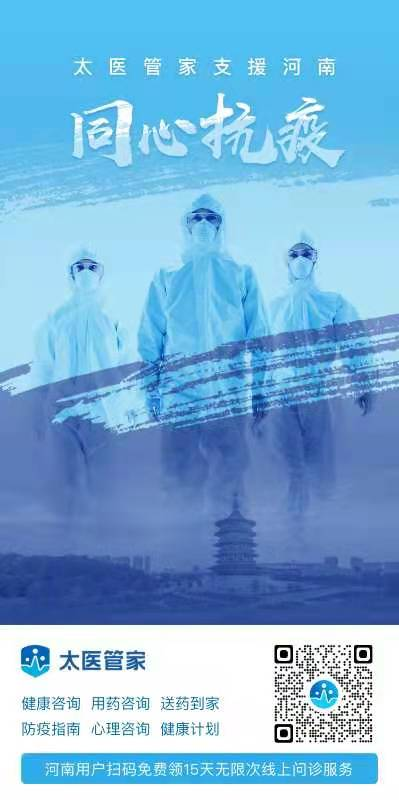 近日,河南地區(qū)出現(xiàn)多起疫情病例,為支援抗疫工作,幫助當(dāng)?shù)鼐用褡龊媒】倒芾恚鰪?qiáng)抗疫信心,太?;ヂ?lián)網(wǎng)醫(yī)院——太醫(yī)管家繼向西安市民開放免費(fèi)線上問診通道后,再次定向河南地區(qū)居民推出在線問診服務(wù)。