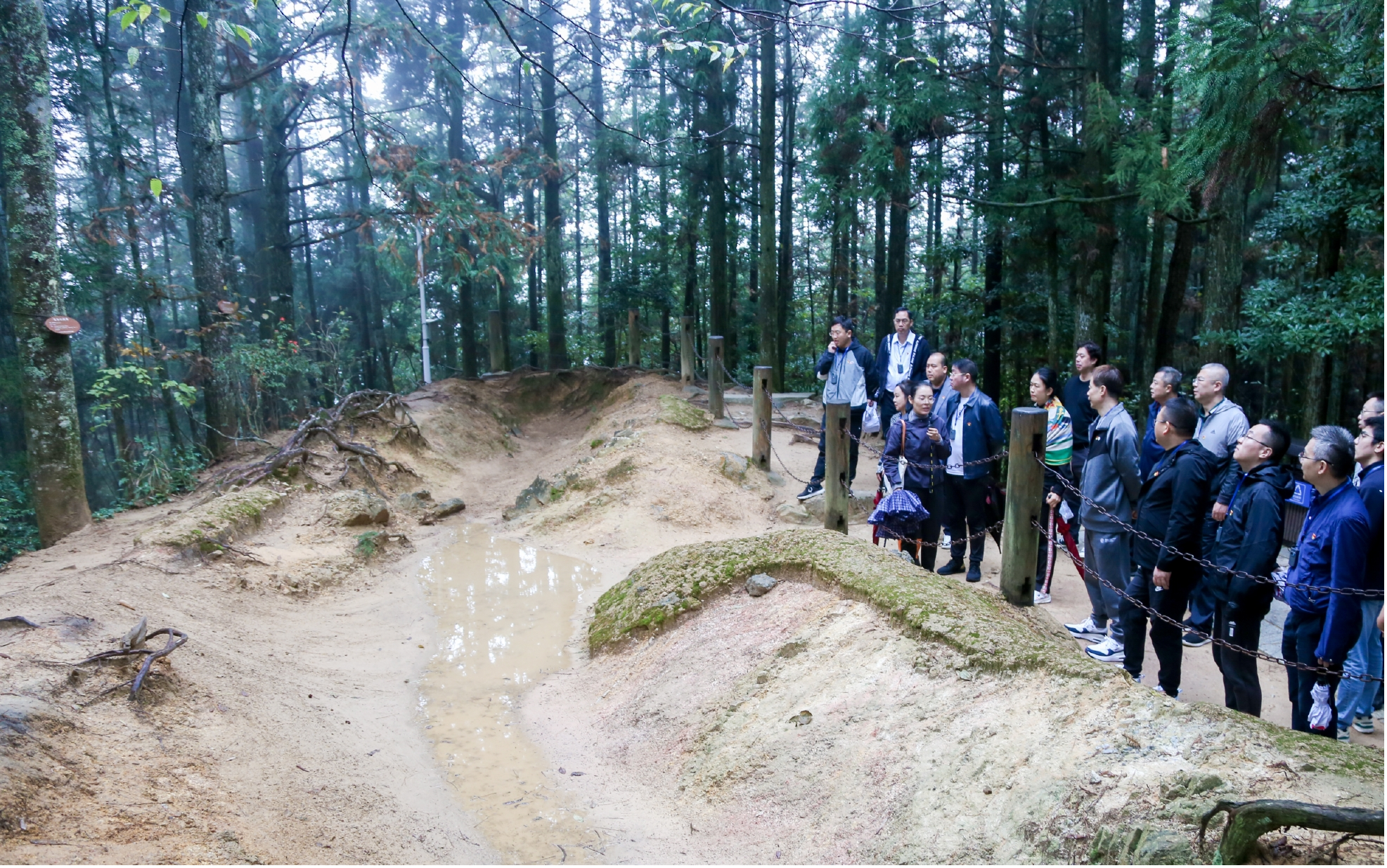 此外,全體黨員同志還來到了黃洋界紀(jì)念碑和炮臺(tái)處,眺望高聳入云的五指峰,朗誦毛澤東詩詞《西江月?井岡山》。在挑梁小道,黨員同志雖手不提,肩未挑,輕裝上陣,僅僅短暫時(shí)間,在崎嶇狹窄的山間小道,早已累得氣喘吁吁,深刻體驗(yàn)到了革命先輩為信仰與不怕困難、樂觀無畏的堅(jiān)強(qiáng)革命意志。