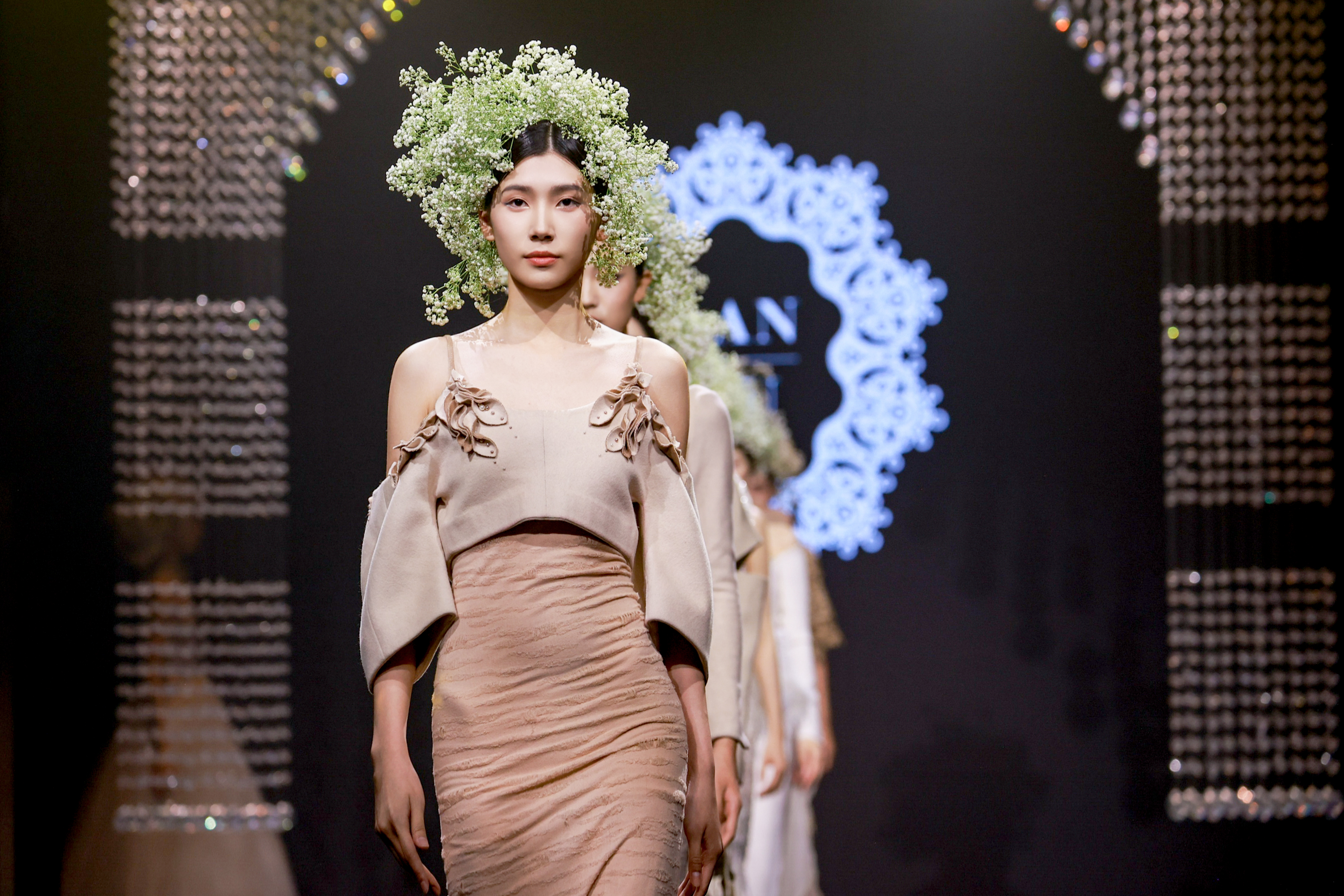 現(xiàn)場更有LANYU高定禮服展示,將中式美學(xué)意境與西式時尚剪裁完美融合,同時加重了蘇繡非遺元素的應(yīng)用比例,將更多的非遺技藝融入服飾創(chuàng)作中,呈現(xiàn)出超高藝術(shù)水準(zhǔn)。