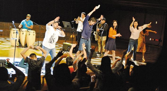 同是爵士樂,相對于4月8日的立陶宛音樂會,14日晚古巴音樂會的畫風大變。舞臺上下的互動頻率和聽眾的參與熱情,為深圳音樂廳成立以來所僅見,這也是今年“一帶一路”國際音樂季迄今最熱鬧的演出。