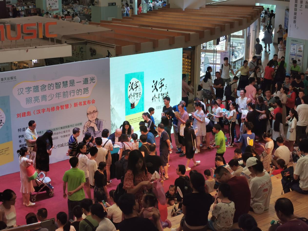 深圳新聞網(wǎng)訊 8月4日下午,壹讀書會(huì)創(chuàng)始人、知名閱讀推廣人劉建彪《漢字與修身智慧》新書發(fā)布會(huì)在深圳書城中心城隆重召開,本次活動(dòng)由海天出版社和深圳書城中心城共同舉辦,北京大學(xué)文學(xué)博士、深圳出版發(fā)行集團(tuán)黨委 書記、總經(jīng)理尹昌龍,深圳市語言文字工作委員會(huì)辦公室主任馬慶,全國十佳文學(xué)教師、福田區(qū)“年度教師”譚妙蓉三位嘉賓蒞臨現(xiàn)場并致辭。本次新書發(fā)布受到市民的熱烈追捧,活動(dòng)開始前中心書城北區(qū)臺(tái)階、過道以及走廊或坐著或站著翹首以盼的閱讀愛好者。