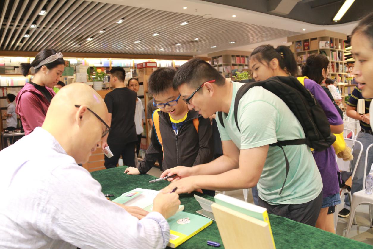 活動最后,作者劉建彪先生繼續(xù)與讀者展開交流,為購書讀者簽名。來自東莞的江先生坦言,周末帶著小孩無意進(jìn)入羅湖書城,即被活動內(nèi)容吸引,在1個小時的活動中,感受到了漢字的魅力,感受到了深圳濃郁的文化氛圍?!耙院髱Ш⒆佣鄟砩钲跁?,看書聽講座”,他說。