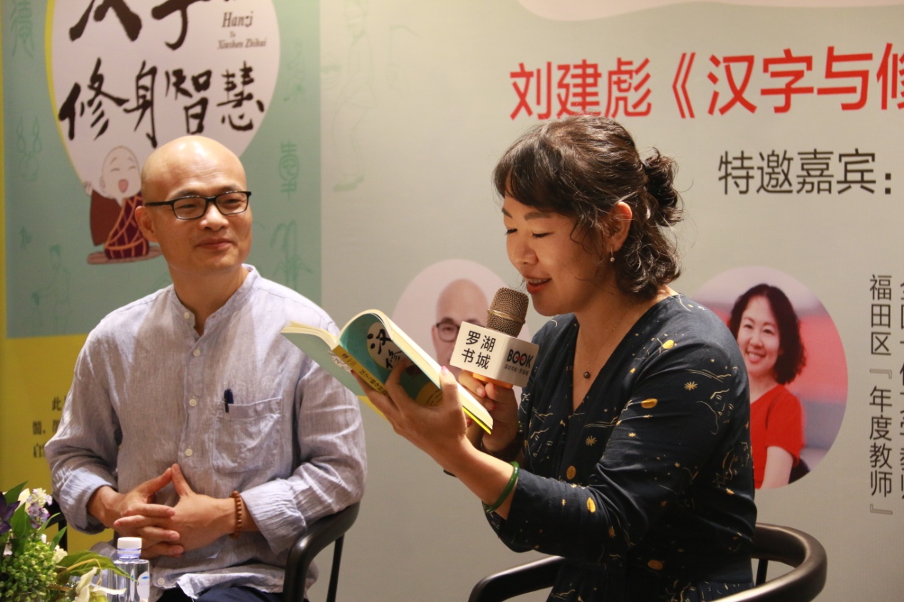 活動由深圳書城羅湖城張華女士主持,邀請到壹讀書會創(chuàng)始人、知名閱讀推廣人、 《漢字與修身智慧》作者劉建彪先生和全國十佳文學(xué)教師、廣東省閱讀推廣“點(diǎn)燈人”譚妙蓉女士擔(dān)任對話嘉賓,為聽眾講述漢字的起源以及他們根據(jù)切身體會對漢字的解讀。