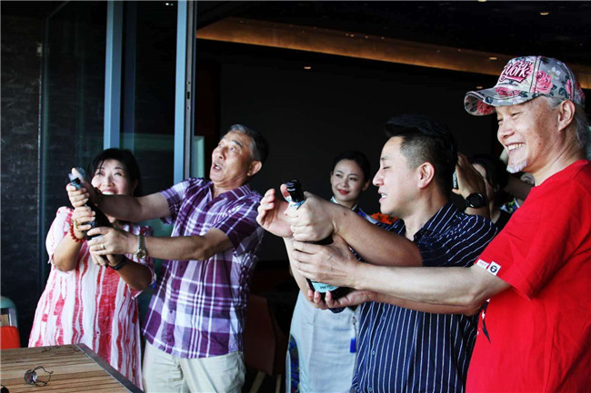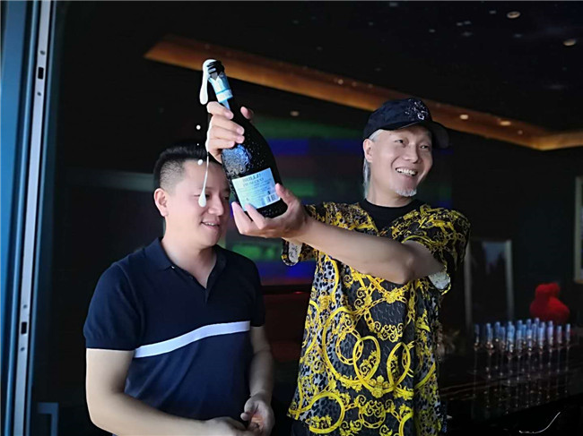 開館儀式上,樊鴻賓老師講話并開香檳慶祝