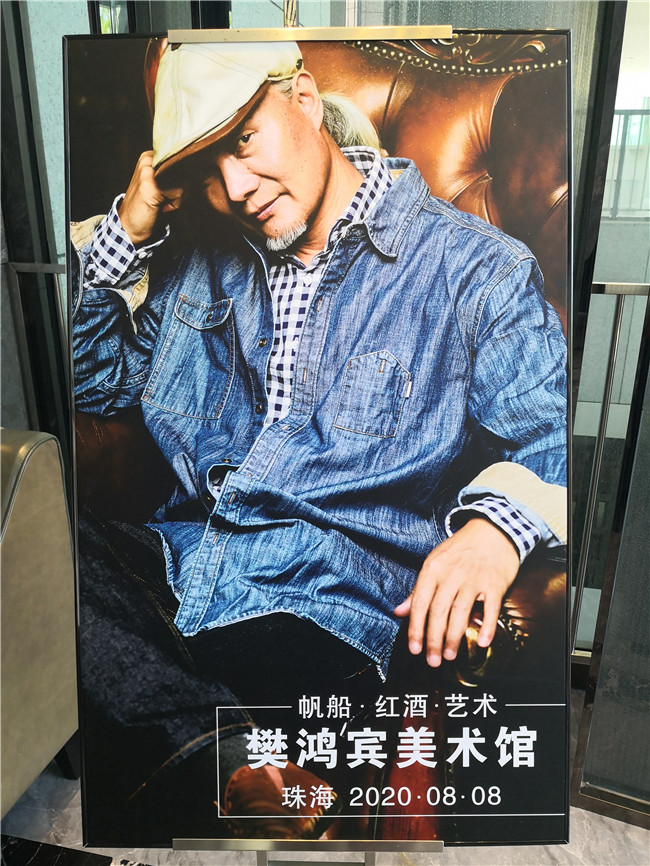 樊鴻賓美術(shù)館座落在珠海市香洲區(qū)內(nèi),旁接情侶路,目眺鳳凰灣,一派浪漫情調(diào),真是一塊滋養(yǎng)藝術(shù)的風(fēng)水寶地。展館所在的天宸大廈十六樓。面朝大海,視野開闊,藍(lán)天白云,碧海揚帆,讓人心曠神怡。與此同時,室內(nèi)樂聲輕伴、紅酒飄香,此景、此情映襯之下,緩步巡看展品,或細(xì)細(xì)靜賞佳作,自然而然有一份莫名舒適的藝術(shù)享受。