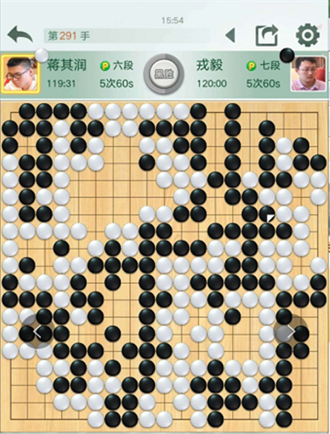 【賽場花絮】本輪比賽中,下出了“四劫循環(huán)”無勝負的棋局。此局出現(xiàn)在上海建橋?qū)W院隊對陣日照山海大象隊的主將之戰(zhàn)中,上海主將李維清與日照主將江維杰下出“四劫循環(huán)”,按規(guī)定,本局判為無勝負。對局停止時,雙方都各剩最后一次讀秒。兩人立即進行加賽。中國圍棋隊領隊華學明發(fā)朋友圈稱贊棋手具有職業(yè)風范。