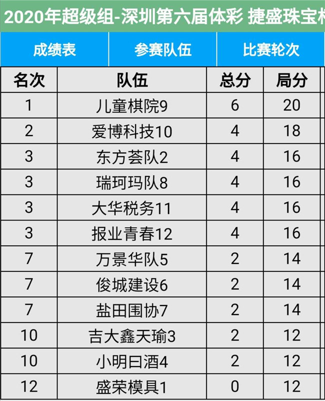 深圳市圍棋聯(lián)賽以其獨(dú)特的25D賽制,新穎的團(tuán)體對(duì)抗形式,旗鼓相當(dāng)?shù)膶?shí)力比拼,而深受?chē)鍚?ài)好者的喜愛(ài),已然成為每年一度的市圍棋愛(ài)好者的盛會(huì)。本屆聯(lián)賽共有28支隊(duì)伍參賽,每支隊(duì)伍12人,領(lǐng)隊(duì)和教練各一至兩人,今年參賽人數(shù)約四百多人。其中,超級(jí)隊(duì)12支,進(jìn)行11輪單循環(huán)比賽,甲級(jí)隊(duì)16支進(jìn)行11輪積分循環(huán)賽。具體賽程安排是:今日開(kāi)賽后,連續(xù)四個(gè)周日,每周3場(chǎng)比賽,計(jì)劃在11月22日完成比賽。本屆比賽12支超級(jí)隊(duì)是:盛榮模具、東方薈隊(duì)、吉大隊(duì)、小明日酒、萬(wàn)景華隊(duì)、俊城建設(shè)、鹽田棋協(xié)、瑞珂瑪隊(duì)、兒童棋院、愛(ài)博科技、大華稅務(wù)、報(bào)業(yè)青春。16支甲級(jí)隊(duì)是:中廣核華龍、武漢地質(zhì)、吉大校友、億貝奇電子、大眾建設(shè)、騰訊圍棋、奇力電子、羅湖圍棋、深圳大學(xué)、金陽(yáng)信隊(duì)、和輝資本、法律人隊(duì)、鑫華豪家私、深圳126隊(duì)、越華建設(shè)、華科校友。大家濟(jì)濟(jì)一堂,通過(guò)手談增進(jìn)友誼,提高棋藝。本屆比賽超級(jí)組與甲級(jí)組實(shí)行升降制,將通過(guò)四個(gè)周日的比賽,分別決出前六名和三支升降的隊(duì)伍。