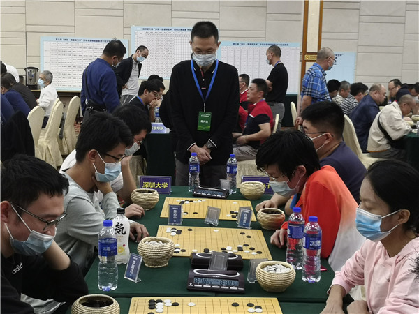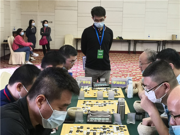 本屆聯(lián)賽在仍在抗疫的形勢下來之不易,賽事組委會非常珍惜,在防疫方面下了一番功夫。本次賽事執(zhí)行主任、著名國手梁偉棠九段介紹說:組委會在本次賽事《補充規(guī)定》中要求“本屆賽事因為疫情防控需要,全體人員必須佩戴口罩,掃碼入場,并全程不得摘下口罩;體溫過高者謝絕入場”。記者觀察到,現(xiàn)場的防疫落實還是比較到位的,一是在賽場入口布置了三人團隊,加強了掃碼、體溫檢測、提醒大家戴口罩,凡是入場的隊員、工作人員以及觀戰(zhàn)的圍棋愛好者,都必須進行體溫檢測,符合正常體溫的方可入場參賽;二是要求參賽隊員和工作人員戴口罩;三是加強賽場巡查,對沒有自覺戴口罩的在場人員進行勸導(dǎo)。總體來說,賽場防疫秩序良好。