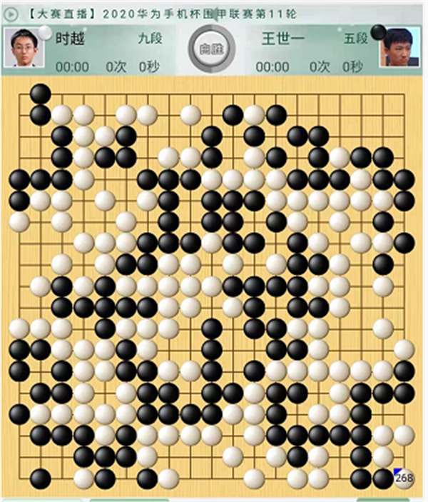 主將臺(tái)由深圳隊(duì)世界冠軍時(shí)越九段執(zhí)白對(duì)陣小將王世一五段。中盤(pán)戰(zhàn)斗中黑棋連續(xù)下出緩手,白棋取得領(lǐng)先。中央定型白棋又出現(xiàn)小失誤,局面接近。官子階段雙方錯(cuò)進(jìn)錯(cuò)出,局面一度來(lái)回波動(dòng)。最終還是白棋后半盤(pán)功力略勝一籌,獲得些許便宜后以明顯優(yōu)勢(shì)獲勝,時(shí)越執(zhí)白中盤(pán)勝王世一。