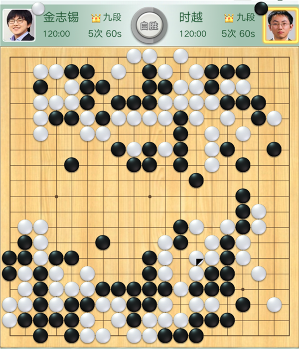 緊接著,時(shí)越執(zhí)黑對陣金志錫一局傳來告負(fù)的消息??v觀全局,開局時(shí)黑稍好,但中盤攻擊上邊白棋時(shí)候方向錯誤,被白棋聯(lián)絡(luò)后自身還留下了白棋開劫的隱患。之后黑棋在劫爭中放棄上方黑子在下邊圍出大模樣爭勝。白棋在黑勢中施展手段時(shí)黑棋必需尋求凈殺白子。無奈周邊不夠厚實(shí)殺不掉,遂于174手時(shí)認(rèn)負(fù)。