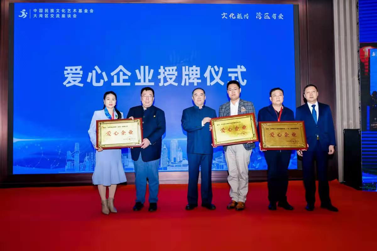 為了牢固樹立良好長久合作關(guān)系,共同推動大灣區(qū)民族文化發(fā)展,主辦方還為戰(zhàn)略合作伙伴中國文化傳媒集團(tuán)南方總部基地,以及深圳智元教育文化傳播有限公司、四季熊少兒教育物聯(lián)科技(廣東)股份有限公司、名家物業(yè)管理(深圳)有限公司三家愛心企業(yè)舉行了授牌儀式。
