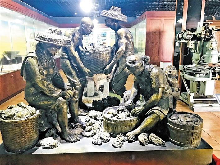 “茫茫大海接藍(lán)天,水下盡是養(yǎng)蠔田。阡陌田疇何界示,叔伯遙指高山巔?!辈┪镳^里這首關(guān)于“打山口”的詩歌深深吸引了記者。在長(zhǎng)期的發(fā)展過程中,沙井蠔業(yè)逐步形成了打山口、流水定作息、集體協(xié)作等生產(chǎn)習(xí)俗和蠔殼砌墻、上香禮拜天后等生活習(xí)俗,有一整套成熟的養(yǎng)殖和加工技術(shù),形成了種蠔、挒蠔、搬蠔、撒蠔、屯蠔、撲蠔、撿蠔、開蠔等傳統(tǒng)工序。沙井蠔民生產(chǎn)習(xí)俗,世代相傳至今,具有一定的文化價(jià)值和社會(huì)價(jià)值,現(xiàn)已被列入深圳市非物質(zhì)文化遺產(chǎn)名錄。