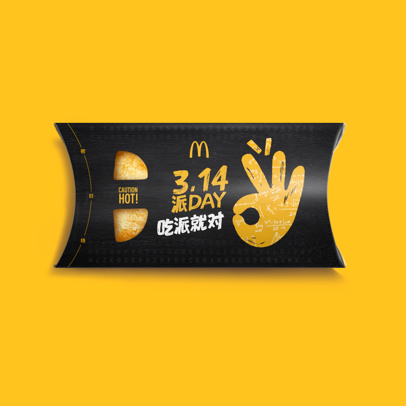 “派”與“π”諧音,麥當(dāng)勞將每年3月14日的國際圓周率日設(shè)為“派DAY”,邀請粉絲一起來餐廳吃派慶祝。