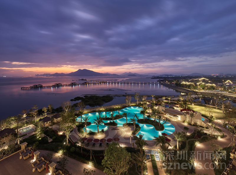 家長(zhǎng)可能更關(guān)心酒店的親子活動(dòng)設(shè)施。記者在這里看到,酒店有獨(dú)具特色的兒童天地、戶外主題兒童樂(lè)園、多樣電子游戲設(shè)備的玩咖及淘氣堡,為孩子提供專用寬敞的游戲空間和每天豐富的親子活動(dòng)。閑暇之余,一家大小可縱身躍入泳池盡情暢玩一番,包含家庭泳池、兒童游泳池、水上娛樂(lè)池,及按摩池。傍晚時(shí)分,還可漫步在海上棧橋、生態(tài)趣樂(lè)園、水云天古鎮(zhèn),感受醉美夕陽(yáng)。