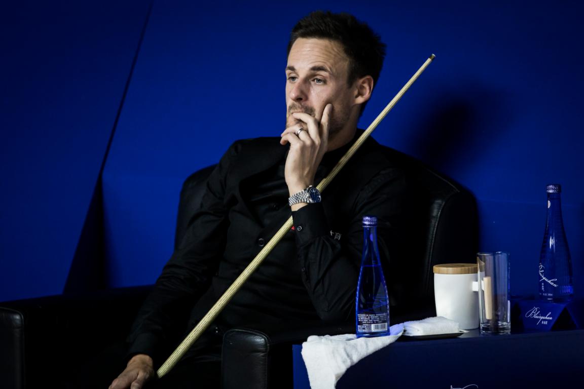 斯諾克可以說是十分講究視覺與氛圍的運動,哪怕不是“戲劇天才”如奧沙利文,當所有選手按照臺球比賽的禮儀穿著西裝馬甲、領結、襯衣、西褲和皮鞋、比賽全程都恪守著紳士的美德——沉默和冷靜;當他們在黑色皮椅上稍作休息,優(yōu)雅地飲用玻璃瓶裝的Blairquhan本來旺礦泉水或蘇打水……觀眾有時候很難分辨,這到底是一場競技體育,還是一場真實的舞臺劇。