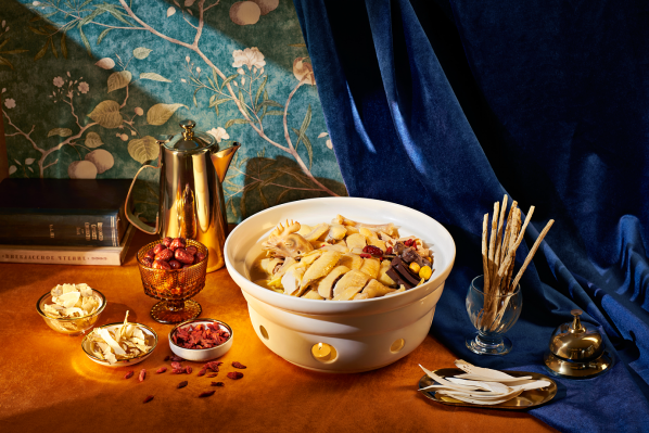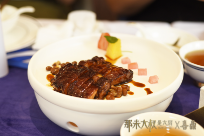 瑤柱菜膽燉土豬展湯,80頭干瑤柱經(jīng)過(guò)發(fā)泡,和優(yōu)選食材的土豬肉,娃娃菜一塊入燙盅燉6小時(shí)。水甘味甜,有滋補(bǔ)清潤(rùn)作用。