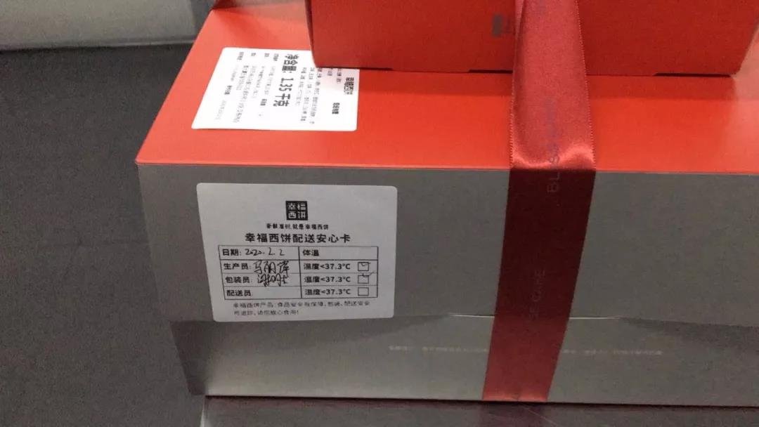 “你們安全,我們安心”,幸福西餅正逐步采取“無接觸配送”的措施并使用配送安心卡。用戶下單后,可通過訂單備注或電話溝通等方式,與配送員協商將產品放置在指定位置,且配送員需與用戶保持一定距離,降低感染風險。