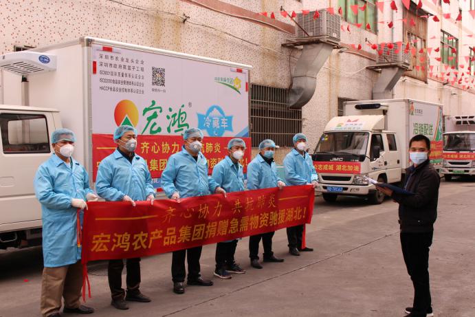 見圳客戶端·深圳新聞網(wǎng)2020年2月12日訊 2月9日,載有豬肉、冷凍品、蔬菜等疫區(qū)人民急缺的農(nóng)副產(chǎn)品的卡車從宏鴻農(nóng)產(chǎn)品集團(tuán)總部駛出,25個(gè)小時(shí)之后,這一批總價(jià)值近30萬元人民幣的應(yīng)急物資將運(yùn)抵湖北省孝感市。