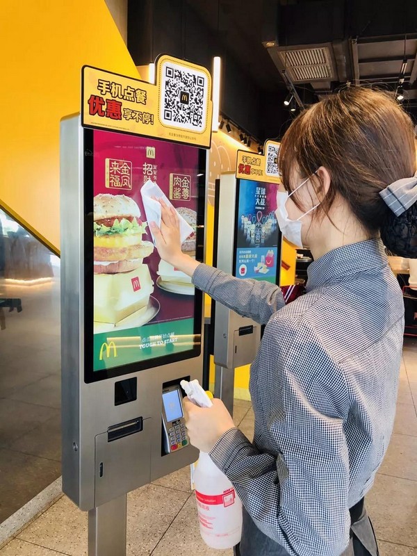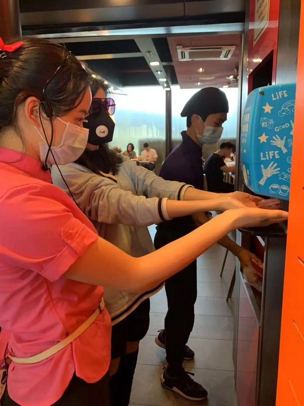 目前全國(guó)所有的麥當(dāng)勞餐廳啟動(dòng)上班員工測(cè)溫流程,并提高員工洗手消毒頻次,全國(guó)餐廳全員佩戴口罩。在餐廳為顧客提供免洗洗手液,對(duì)所有餐廳的通風(fēng)系統(tǒng)和顧客常接觸的設(shè)施,強(qiáng)化消毒并增加頻次,包括大門(mén)把手、自助點(diǎn)餐屏、樓梯扶手、柜臺(tái)臺(tái)面、取餐區(qū)、桌椅、餐盤(pán)、兒童椅、兒童樂(lè)園等。
