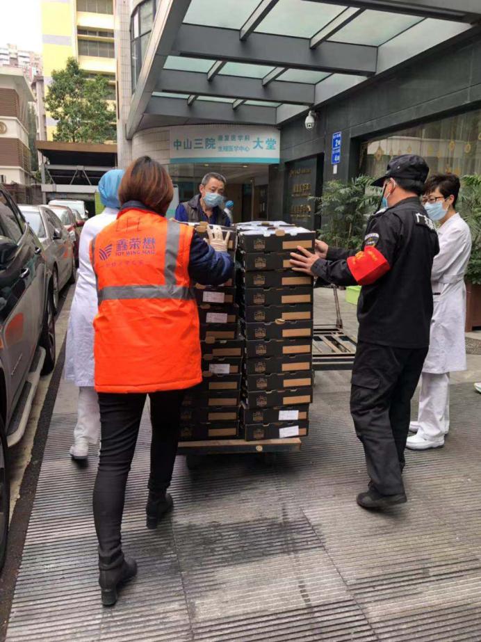 鑫榮懋集團為中山大學(xué)附屬第三醫(yī)院送去270箱新鮮水果。