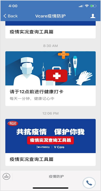 在疫情防控部分,維他奶準(zhǔn)備充足,全力保障每一位員工的健康和安全。首先,利用企業(yè)微信,維他奶建立每日健康監(jiān)控機(jī)制,持續(xù)追蹤全體員工健康狀況。其次,公司利用微信小視頻等媒體工具制作防控指引和要求,讓員工掌握防控知識(shí)和防控要求。除了必不可少的佩戴口罩、測(cè)量體溫、健康問詢登記和辦公場(chǎng)所和生產(chǎn)區(qū)域的消毒工作外,維他奶還建立全方位覆蓋的防控組織和應(yīng)急預(yù)案,設(shè)立疫情防控專員,鼓勵(lì)職能部門的員工使用在線會(huì)議等溝通工具以減少近距離接觸,實(shí)現(xiàn)工作會(huì)議和防疫安全的兩不誤。