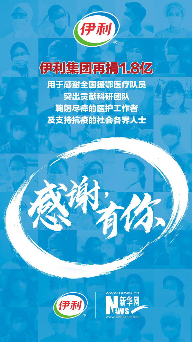 新華網(wǎng)北京3月26日電(胡可璐) 在這場戰(zhàn)“疫”中,無數(shù)平凡英雄帶給我們最多感動,他們以“逆行者”的無畏和擔(dān)當(dāng)筑起疫情防控生命線,守護(hù)著人民,守護(hù)著國家。3月26日,伊利集團(tuán)再捐1.8億,第一時(shí)間購買京東購物卡,贈送給全國所有援鄂醫(yī)療隊(duì)員,向他們提供全年?duì)I養(yǎng)支持;向鐘南山院士、李蘭娟院士、程京院士團(tuán)隊(duì)捐贈1500萬元,感謝科研工作者做出的突出貢獻(xiàn),共同推動健康領(lǐng)域的科研攻關(guān);第一時(shí)間購買京東購物卡,贈送給這次抗擊疫情中因公殉職醫(yī)護(hù)工作者的家屬,為他們提供連續(xù)十年的營養(yǎng)支持;同時(shí)也向奮戰(zhàn)在抗疫一線的社會各界人士提供營養(yǎng)保障。責(zé)任無界,大愛無疆,伊利累計(jì)捐贈額度將達(dá)2.8億,共迎抗疫勝利。