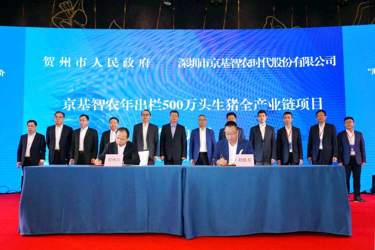 見(jiàn)圳客戶(hù)端·深圳新聞網(wǎng)2020年5月25日訊 2020年5月22日,廣西東融先行示范區(qū)(賀州)建設(shè)發(fā)展若干政策新聞發(fā)布會(huì)暨“灣企入桂”賀州項(xiàng)目推介會(huì)在深圳舉行。推介會(huì)上,深圳市京基智農(nóng)時(shí)代股份有限公司 (以下簡(jiǎn)稱(chēng)“京基智農(nóng)”)與廣西賀州市人民政府簽署《京基智農(nóng)賀州市年出欄500萬(wàn)頭生豬全產(chǎn)業(yè)鏈項(xiàng)目合作框架協(xié)議》,這意味著京基智農(nóng)生豬產(chǎn)業(yè)布局劍指千萬(wàn)頭規(guī)模,現(xiàn)代農(nóng)業(yè)板塊駛?cè)氚l(fā)展的快車(chē)道。